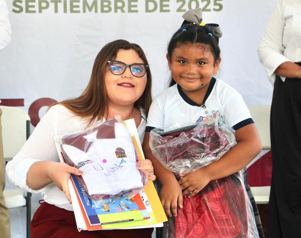 Como parte de las acciones en apoyo a la educación y la economía familiar, Mara Lezama impulsa el Programa de Mochilas, Útiles y Uniformes Escolares que este ciclo escolar 2025-2026 contempla 221 mil 295 mochilas y uniformes, así como 244 mil 71 paquetes de úti-