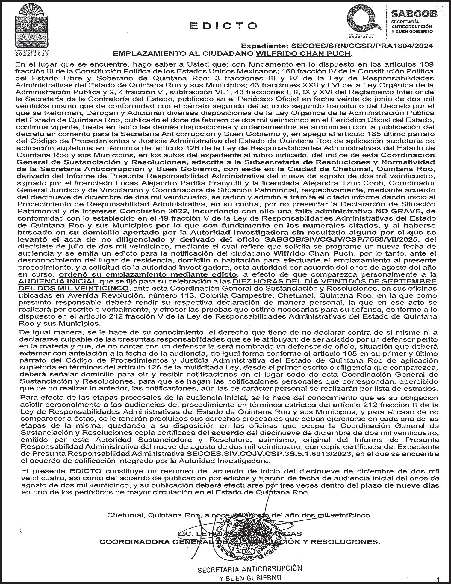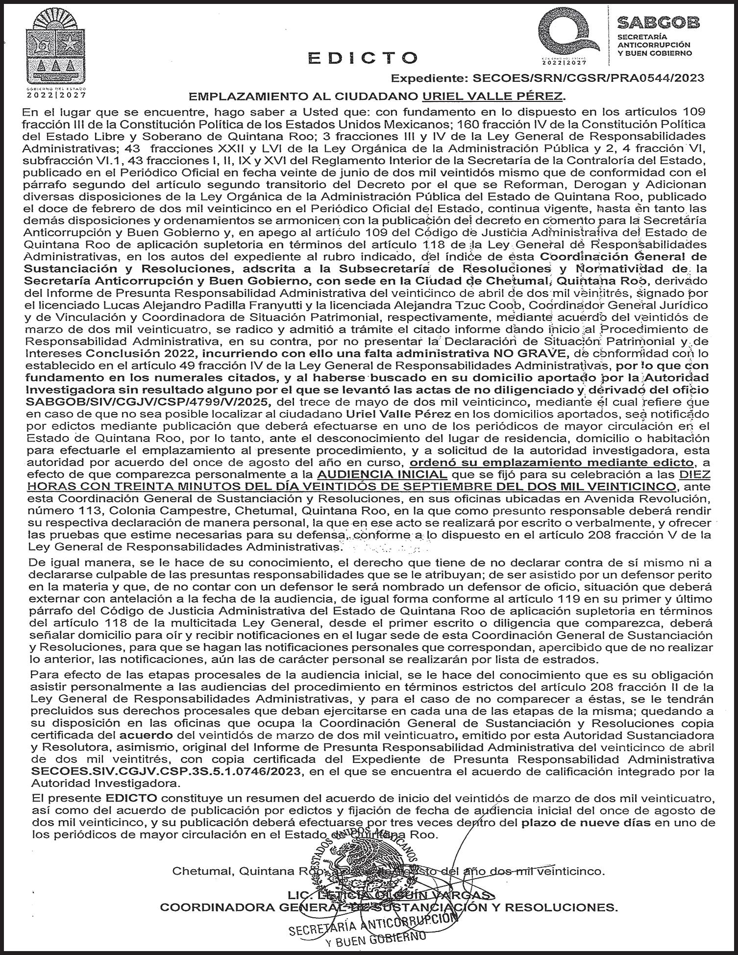 misma que fue cumplimentada por Policías de Investigación.