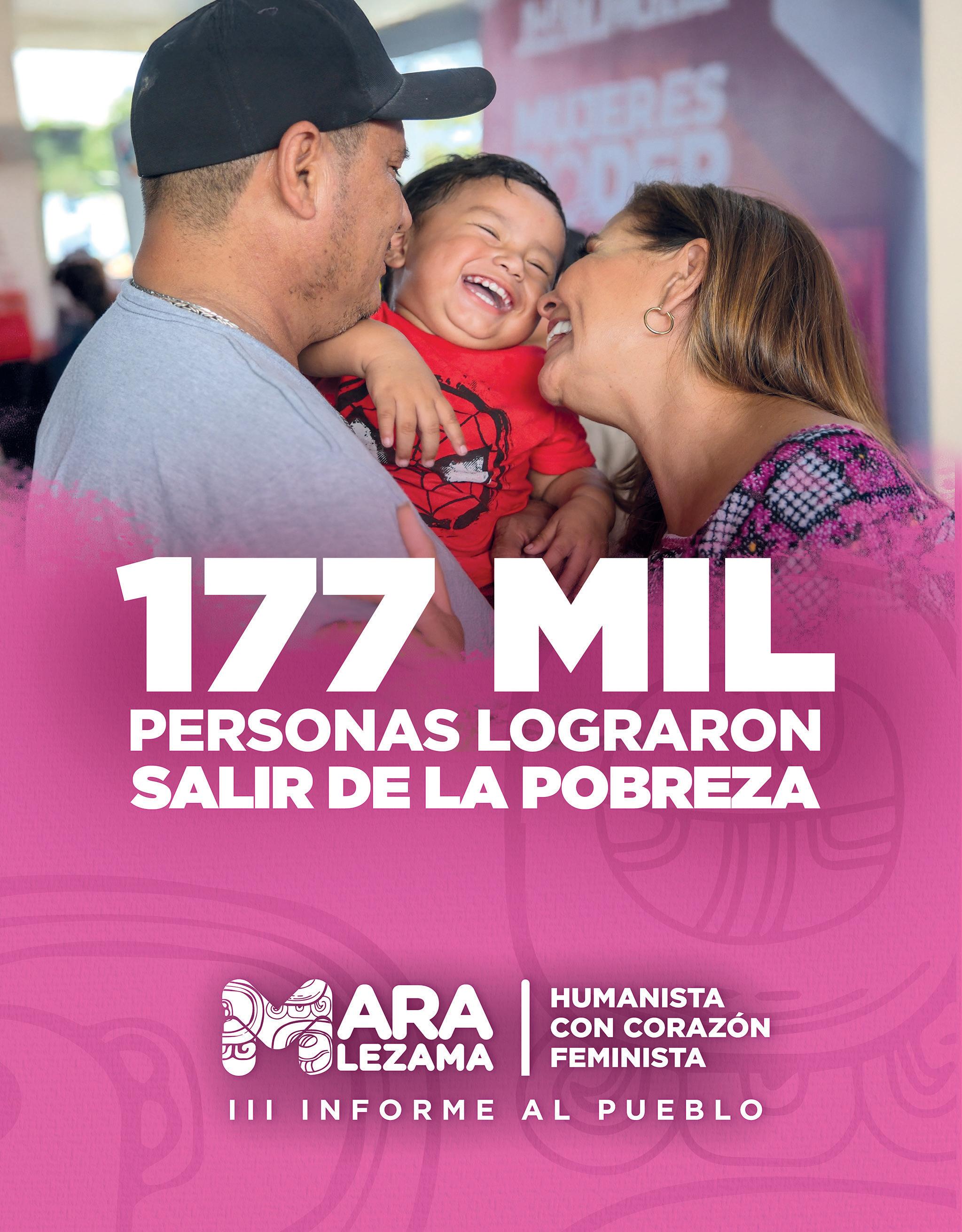 Mara Lezama trabaja con el pueblo, al distribuir más de 225 mil mochilas, útiles y uniformes gratuitos; desarrolla el programa Faro del Bienestar y se entregaron 5 mil 173 máquinas de coser para la modalidad fortalecimiento de oficios; se instalaron paneles solares para darle a familias que no lo tenían, energía eléctrica; se llevaron caravanas del bienestar a las poblaciones apartadas; se fortaleció a 101 grupos artesanales de 65 localidades a través de Artesanas del Bienestar.