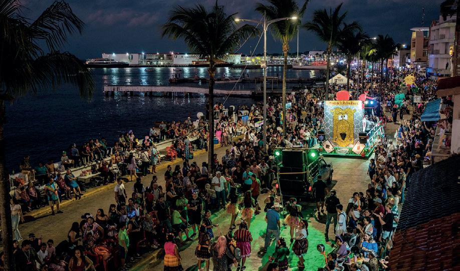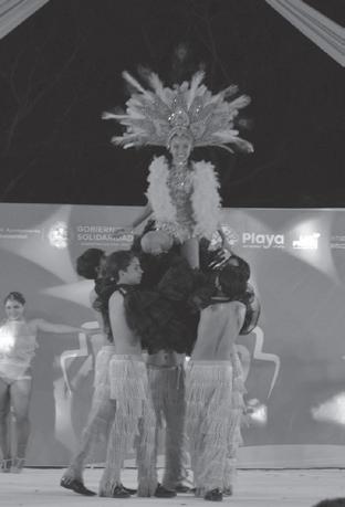 muchos colores, pusieron a bailar con música de salsa y ritmos caribeños a los ciudadanos que los acompañaron a lo largo del derrotero que partió con rumbo a la Avenida Bonampak hasta llegar a la Plaza de Toros y finalizar en el Malecón Tajamar, para incorporarse al ameno programa artístico a lo largo de la velada.