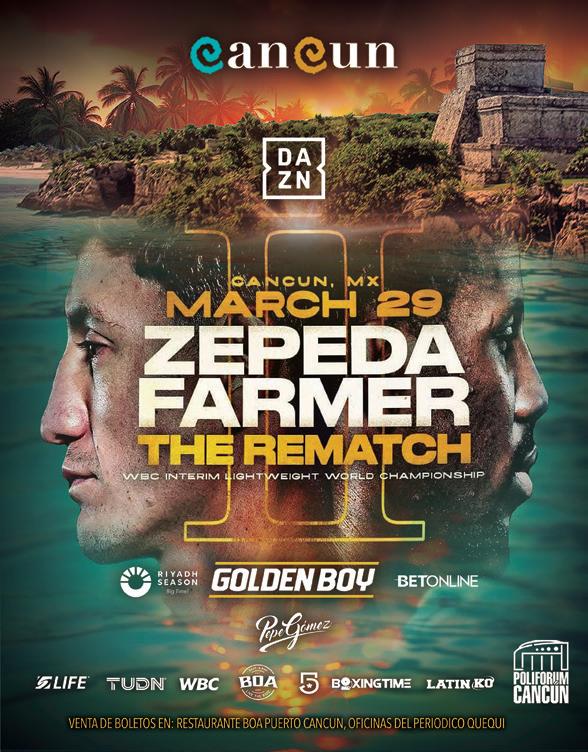 a todo el mundo por la plataforma deportiva más importante del momento como lo es DAZN, así como por Televisa-Univision (TUDN) y también por la señal de ESPN, donde esperan un lleno a reventar en el “Poliforum Benito Juárez”. “Estoy muy contento con todo lo que vamos a hacer, el sábado es la gran pelea, es en el Poliforum, un lugar precioso que acaba de remodelar la gobernadora del estado; quedó bellísimo. Considero que vamos a tener 8 mil personas, lo vamos a abarrotar. Hace unos meses con Celex Castro y Joselito Velázquez tuvimos como 5 mil personas. Es un lugar con aire acondicionado, iluminación, butacas espectaculares y creo que en esta ocasión por tratarse del ‘Camarón’ Zepeda, el ‘Manotas’ y otros, Yokasta Valle, sin lugar a dudas va a reventar Cancún. Va a es-