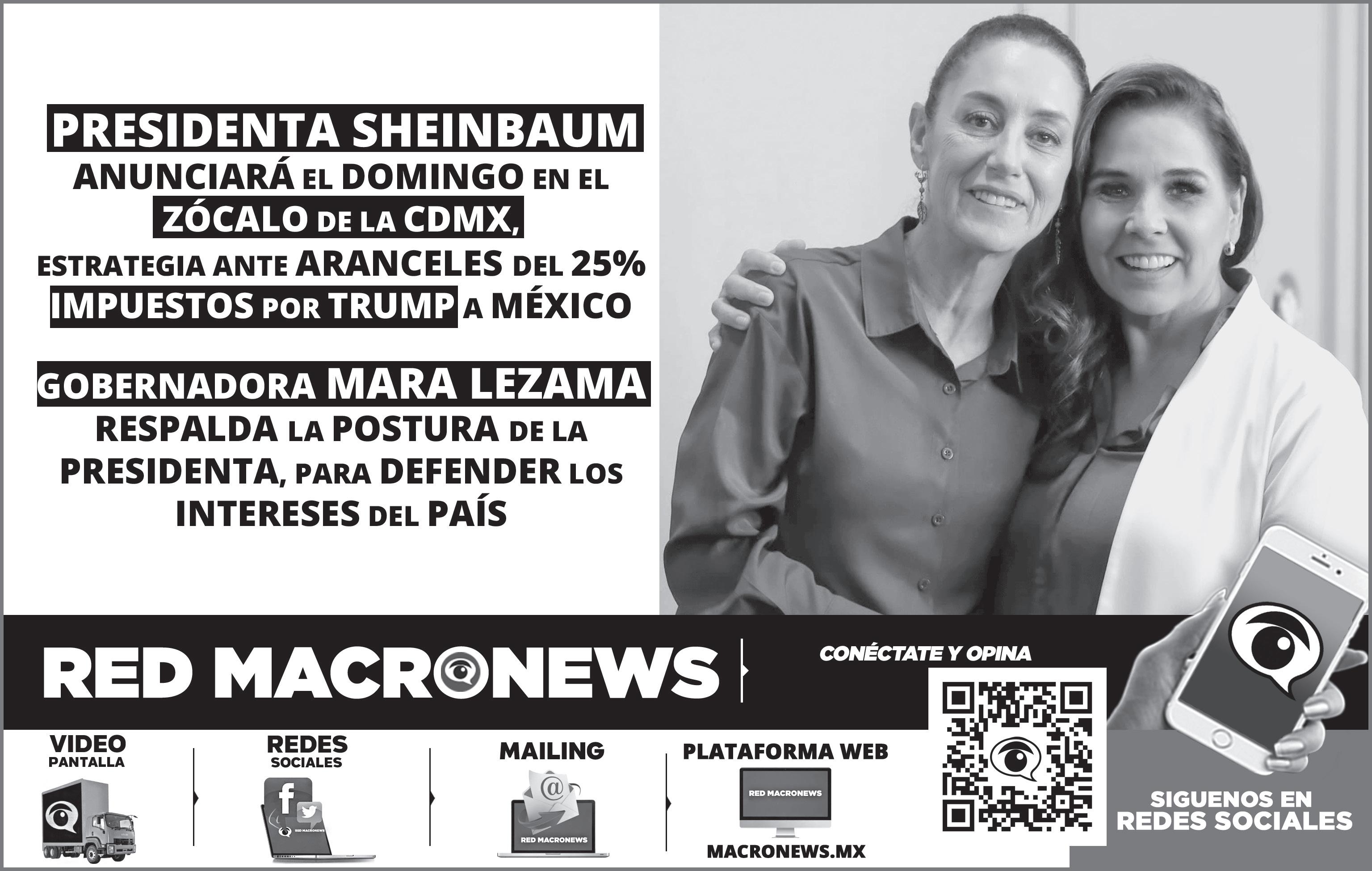 En su llamado a la unidad, la presidenta anunció que este domingo se compartirá con la ciudadanía las acciones que su gobierno tomará en respuesta, al mismo tiempo que reiteró que México es un país soberano e independiente, capaz de afrontar cualquier adversidad.
