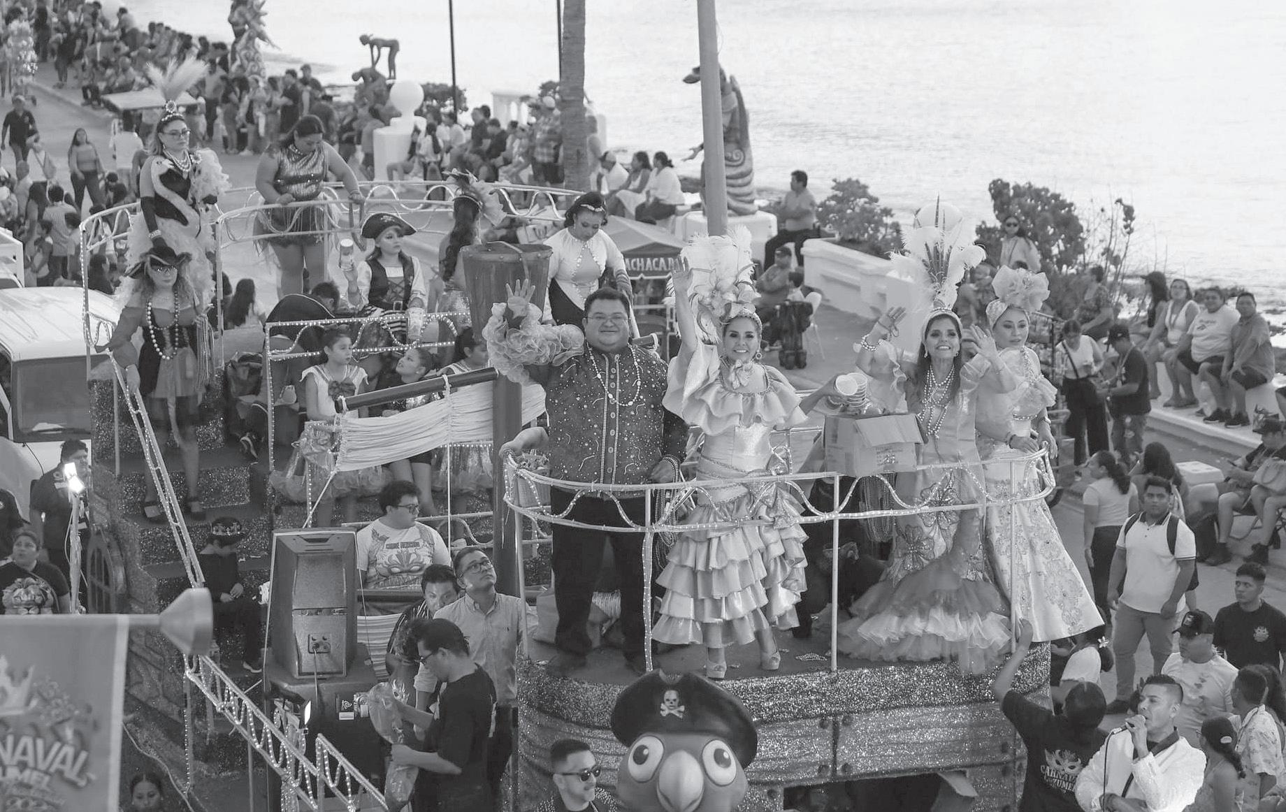 unió en esta fiesta carnestolenda familiar en un lugar emblemático. También se llevó a cabo en las principales avenidas de la ciudad, el desfile de la fiesta cancunense, en el que, niñas, niños, jóvenes y adultos bailarines a pie o en los carros alegóricos, vestidos con atuendos de plumas, lentejuelas y