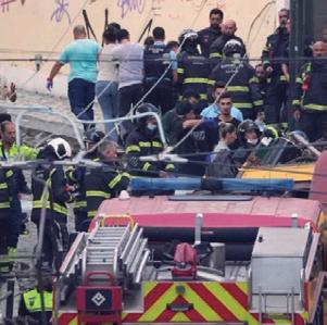 › El vehículo quedó en posición vertical tras desplomarse más de dos metros.