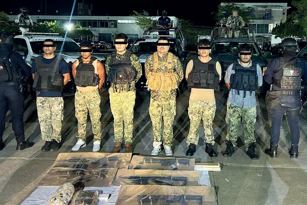 Como parte de la Estrategia Nacional contra la Extorsión y acciones de contención del delito, en Tabasco, elementos de la Secretaría de Seguridad y Protección Ciudadana (SSPC), Secretaría de la Defensa Nacional (Defensa), Secretaría de Marina (Semar), Fiscalía General de la República (FGR), Guardia Nacional (GN) en coordinación con la Secretaría de Seguridad y Protección Ciudadana y la Fiscalía General del Estado, ambas de Tabasco, detuvieron a seis hombres con armas, dosis de droga y vehículos.