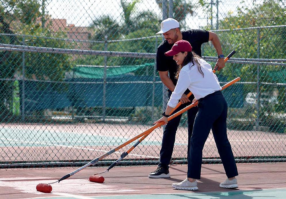 LA PRESIDENTA MUNICIPAL DE BENITO JUÁREZ, ACOMPAÑADA POR ALEJANDRO LUNA, DIRECTOR DEL DEPORTE, supervisó los trabajos en la cancha de tenis del Campo Deportivo “8 de Octubre” de la SM 21, donde se pondrá en marcha la primera Escuela Municipal de Tenis.