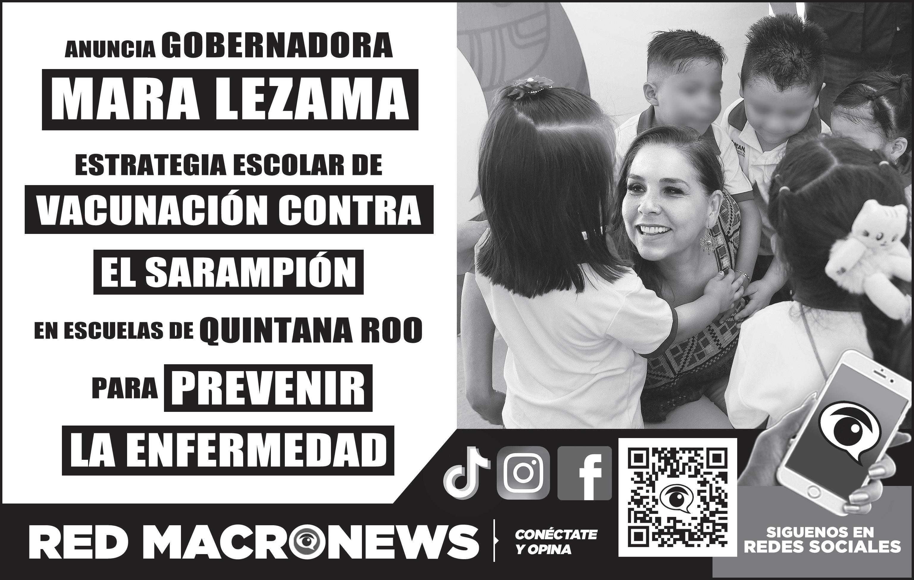 La gobernadora Mara Lezama Espinosa anunció el arranque de la Estrategia Escolar de Vacunación contra el Sarampión en Quintana Roo, mediante la cual brigadas de salud visitarán escuelas primarias públicas para revisar y completar los esquemas de vacunación de niñas y niños menores de 12 años, con la autorización de los padres de familia o los tutores.