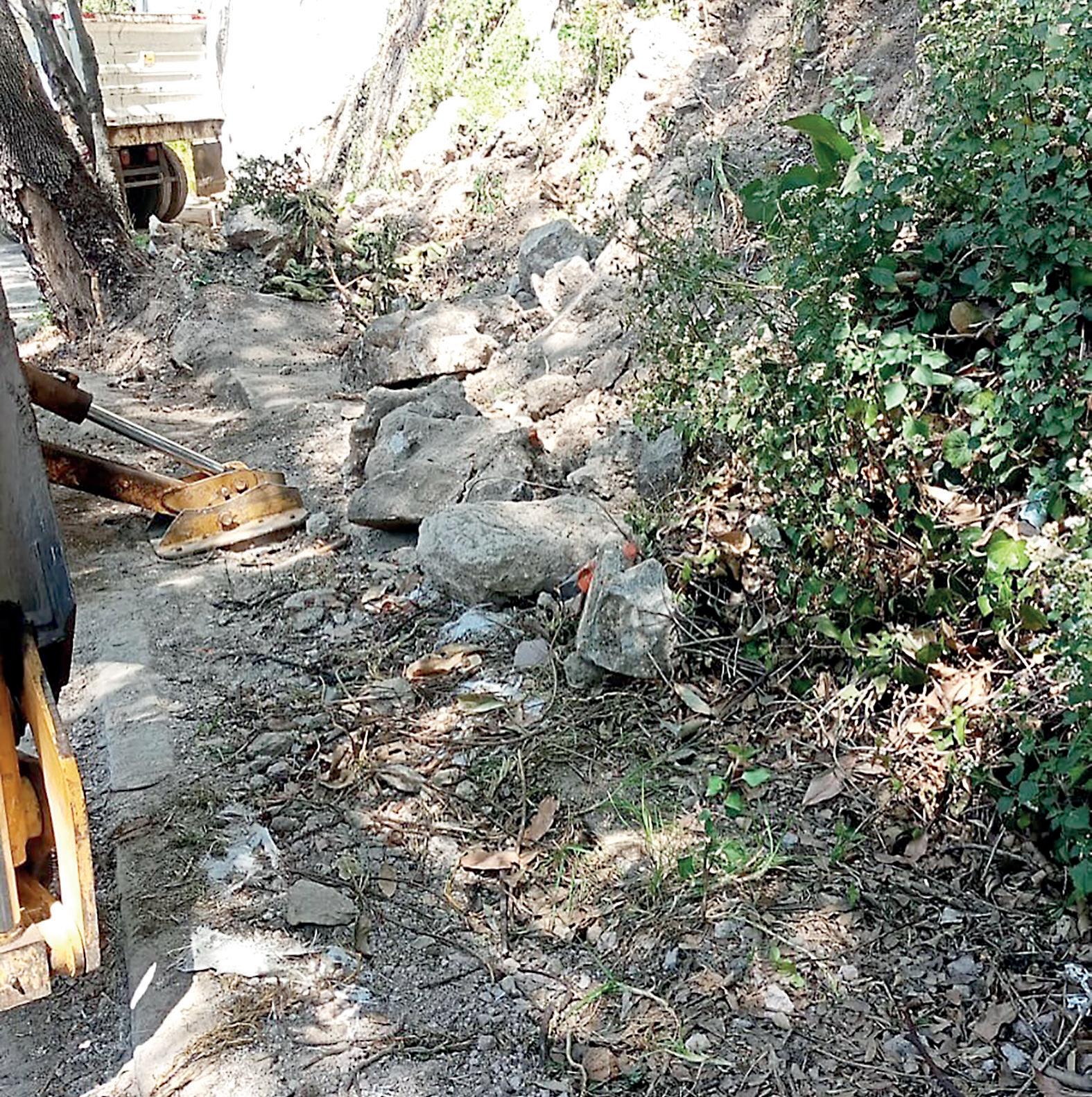 › Una retroexcavadora removió tierra y rocas durante los trabajos en Ahuehuetes Sur.