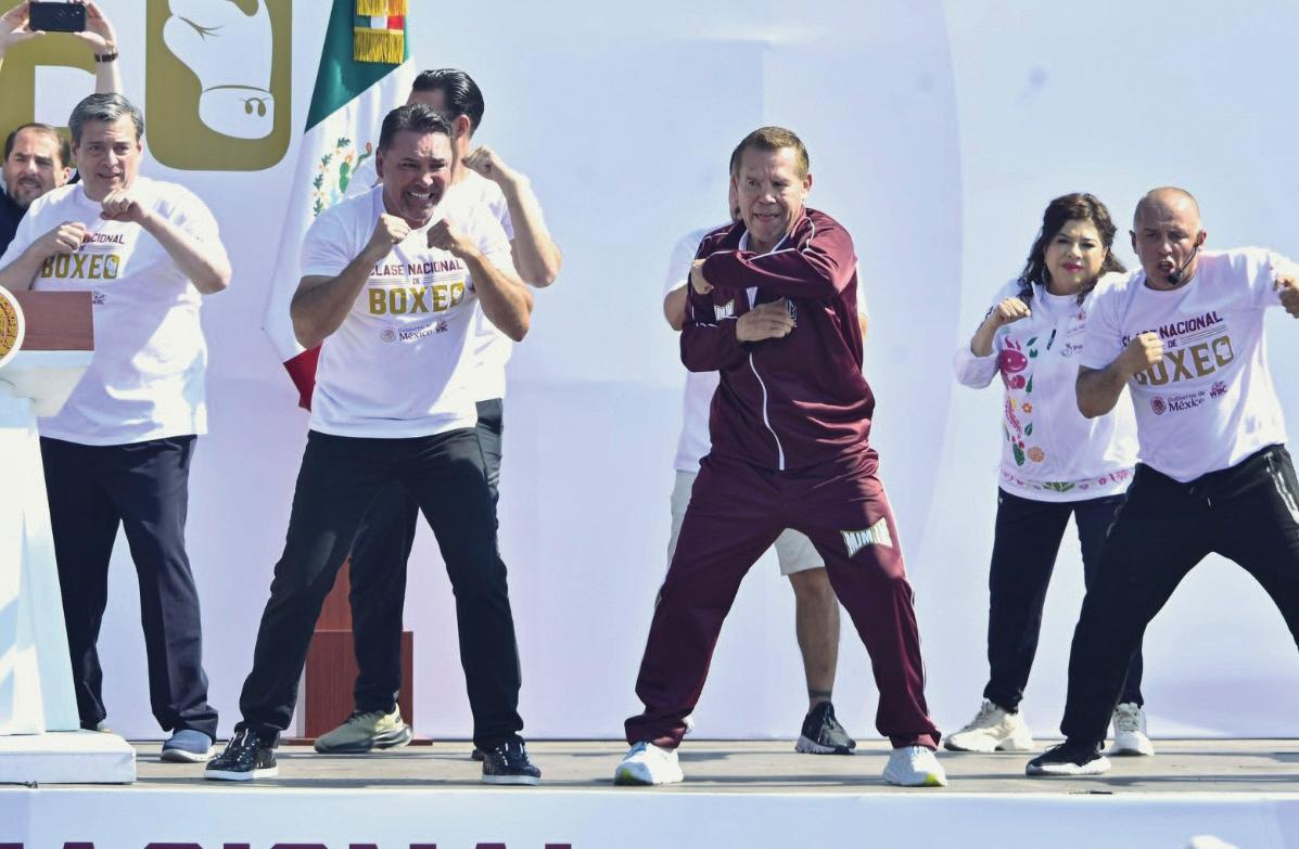 MAURICIO SULAIMÁN, Roberto “Manos de Piedra” Durán, Julio César Chávez, Pepe Gómez, “Claudita” la botarga, Pepe Cantoral, el “Güerito” de Tepito, el “Pitbull” Cruz y Oscar de la Hoya, presentes en el Zócalo.