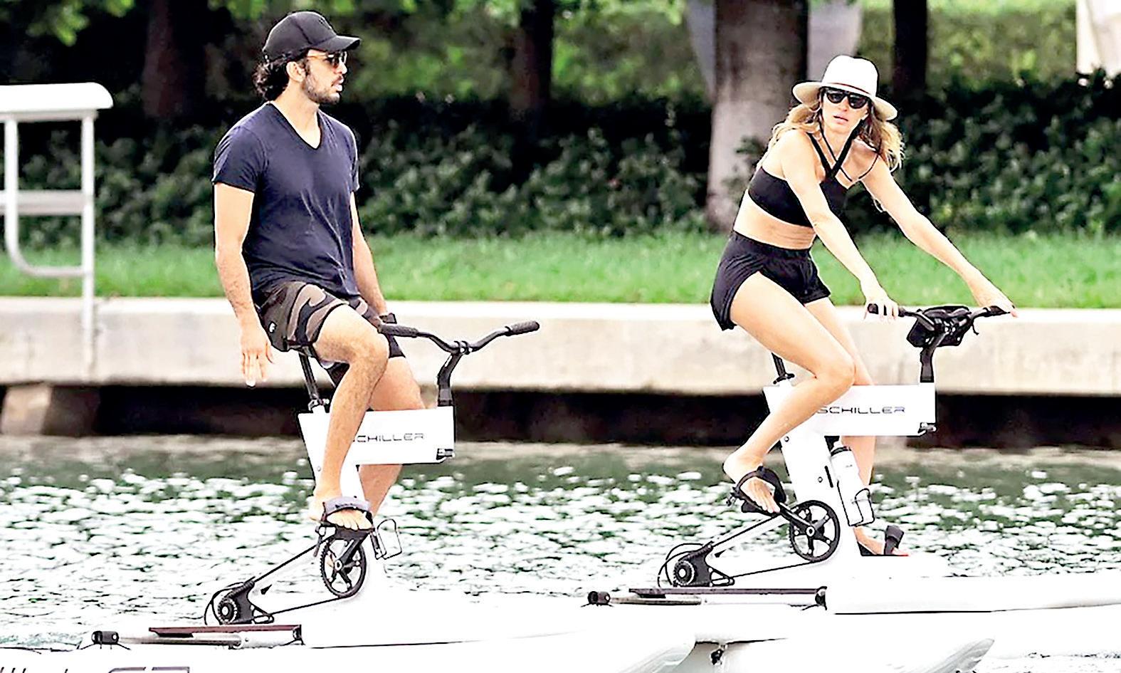 Miami. Gisele Bündchen tiene una genética privilegiada, como prueba la espectacular forma física de la que puede presumir tan solo dos meses después de haber dado a luz. Joaquim Valente y la top model fueron vistos mientras se ejercitan en las water bikes.