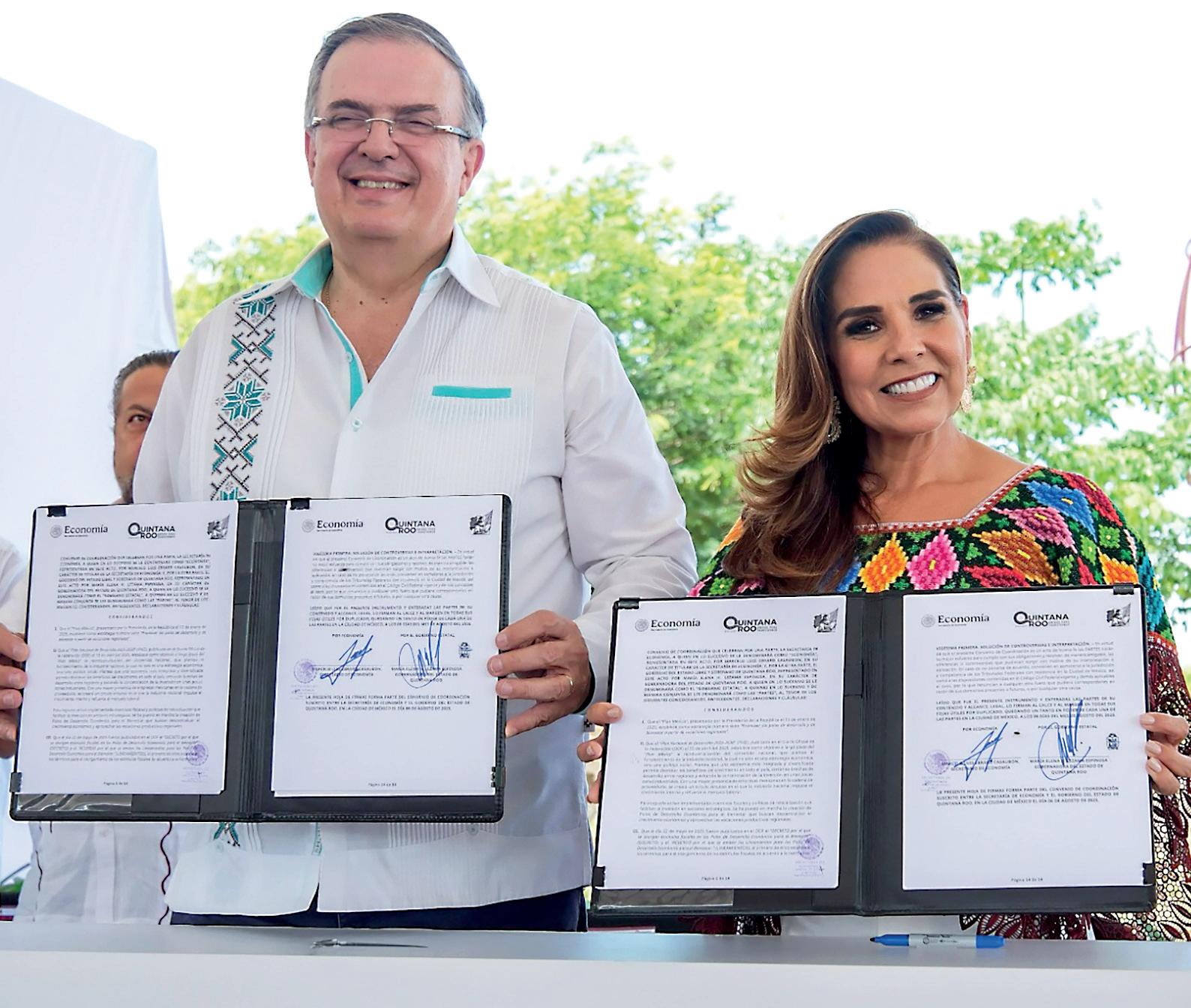 › La gobernadora Mara Lezama y el secretario de Economía, Marcelo Ebrard, firmaron el primer Polo de Desarrollo Económico para el Bienestar en Chetumal.