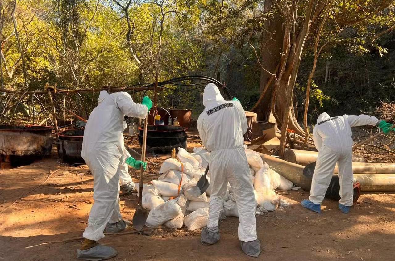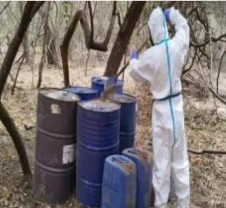 En todos los sitios fueron encontrados tambos, tinas, costales, bidones y diversas sustancias quími-