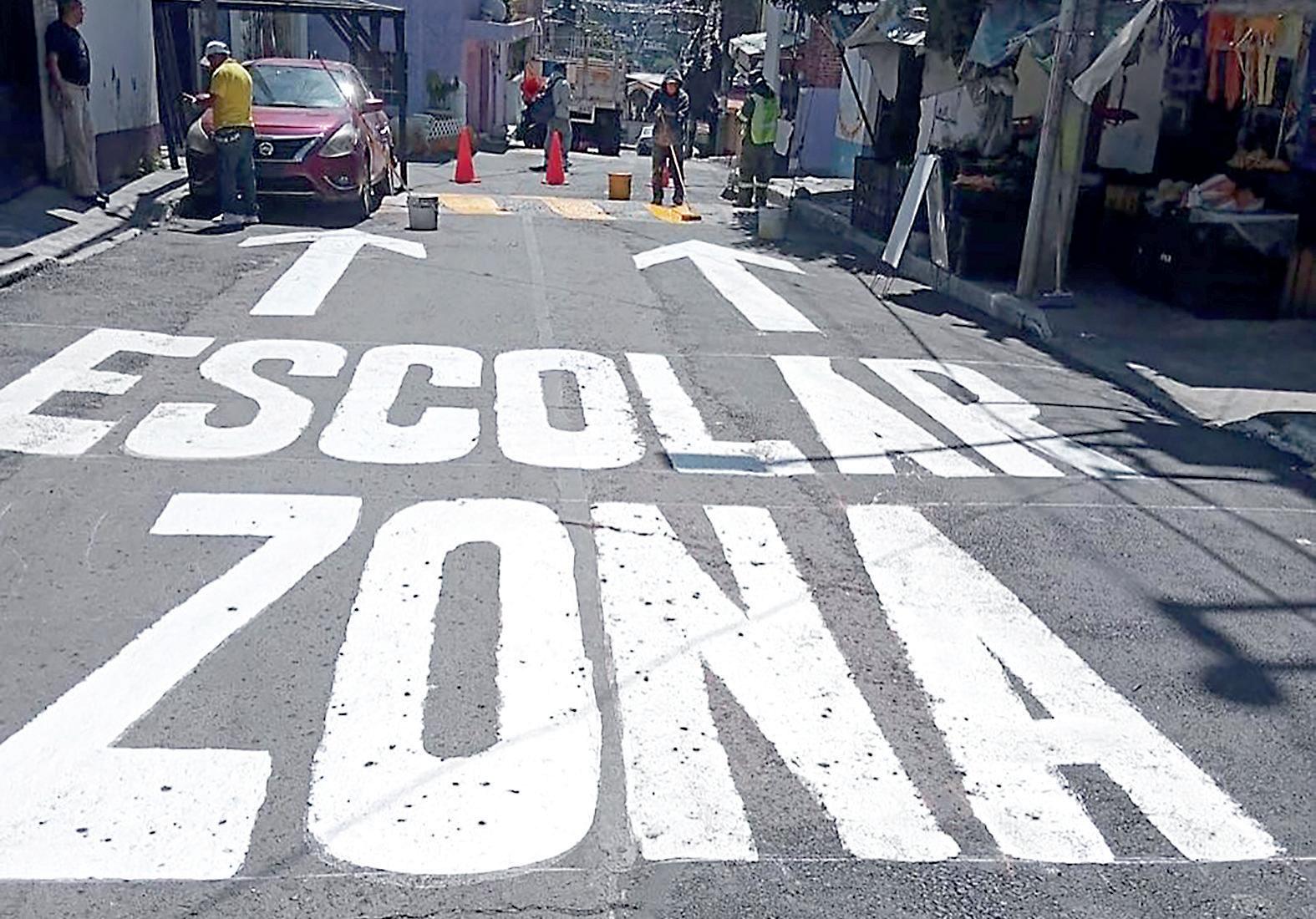 Gobierno. Continúan los trabajos de rehabilitación de las vialidades cercanas a zonas escolares para garantizar la seguridad de los estudiantes y de la ciudadanía en general en toda la demarcación.