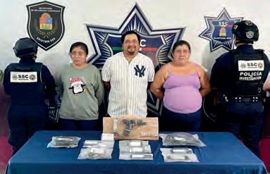Se realiza la detención de Guadalupe “N”, Lizbeth Estela “N” y Rosa Idalia “N”, presuntos implicados en delitos Contra la Salud, y violación a la Ley Federal de Armas de Fuego y Explosivos. Durante recorridos de prevención del delito y vigilancia, elementos del Grupo de Investigación de la Secretaría de Seguridad Ciudadana, en coordinación con las Secretarías de Marina y de la Defensa Nacional, observaron a una persona del sexo femenino, intercambiando bolsitas de plástico que contenían vegetal verde con características similares a la marihuana, con un hombre y una mujer que se encontraban a bordo de un vehículo.
