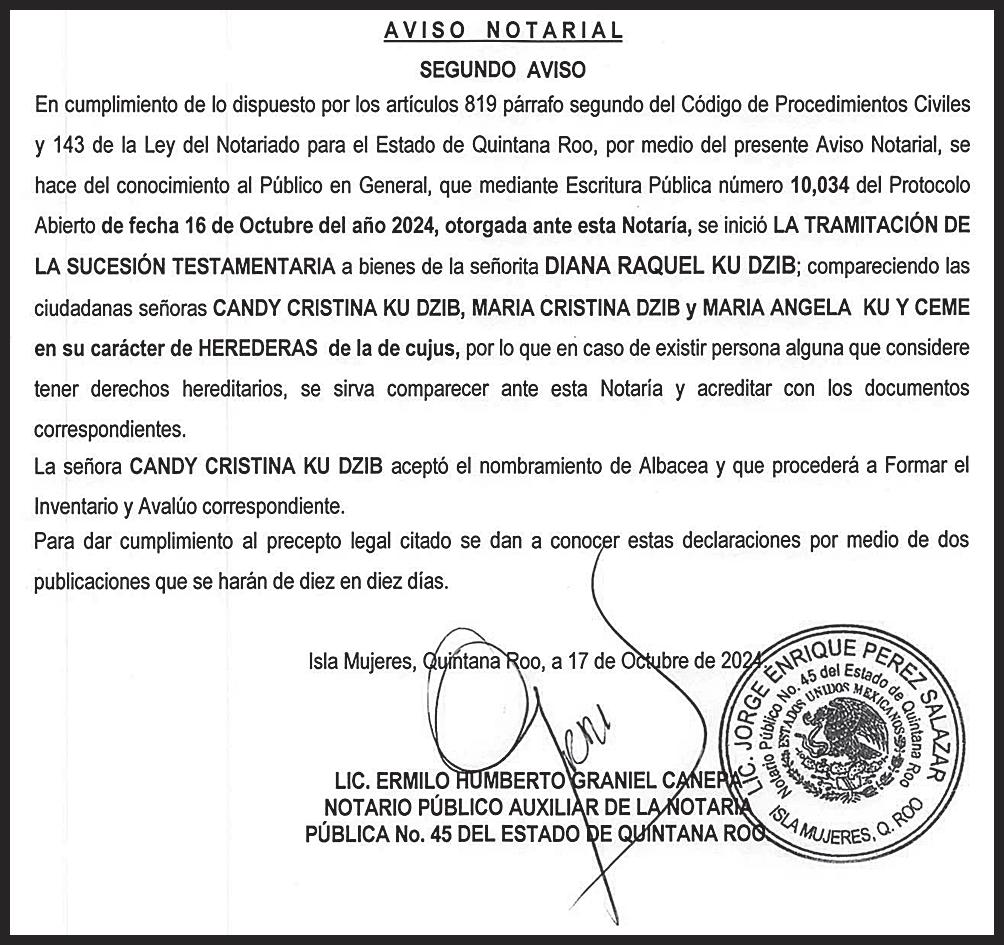 En cumplimiento con lo dispuesto en el artículo 34 de la Ley General del Equilibrio Ecológico y la Protección al Ambiente (LGEEPA), CONDOMINIO PUERTO CANCÚN UC-69 A.C., hace público el proyecto “Acciones para reacondicionamiento de playa”, con pretendida ubicación en la playa y área marina colindante con los lotes Unidad Condominal 69, Lote 1-02, Manzana 27, SM 2, localizados en el Desarrollo Puerto Cancún, Avenida Bonampak de la Ciudad de Cancún, Municipio de Benito Juárez, Estado de Quintana Roo C.P. 77500