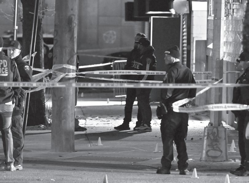 › La Policía acordonó el lugar donde estaba tirado el cuerpo en plena calle.