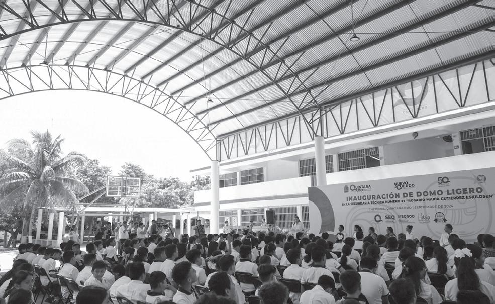 Por Redacción › Quequi Cumpliendo su compromiso con mil 77 alumnos de la Secundaria Técnica No. 27 “Rosario María Gutiérrez Eskildsen”, de Chetumal, la gobernadora de Quintana Roo, Mara Lezama Espinosa, llevó a cabo la entrega oficial de un domo ligero y la rehabilitación de la cancha deportiva, además del mantenimiento preventivo de pintura en los edificios, a través del Instituto de Infraestructura Física Educativa (Ifeqroo).