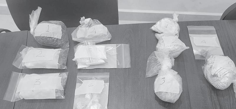 Cabe destacar, que se detectaron sustancias prohibidas como: 469 gramos de marihuana, 105 gramos de polvo blanco, 180 dosis de cris-