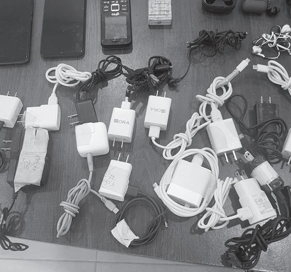 › Una gran cantidad de celulares y cargadores también fueron asegurados.