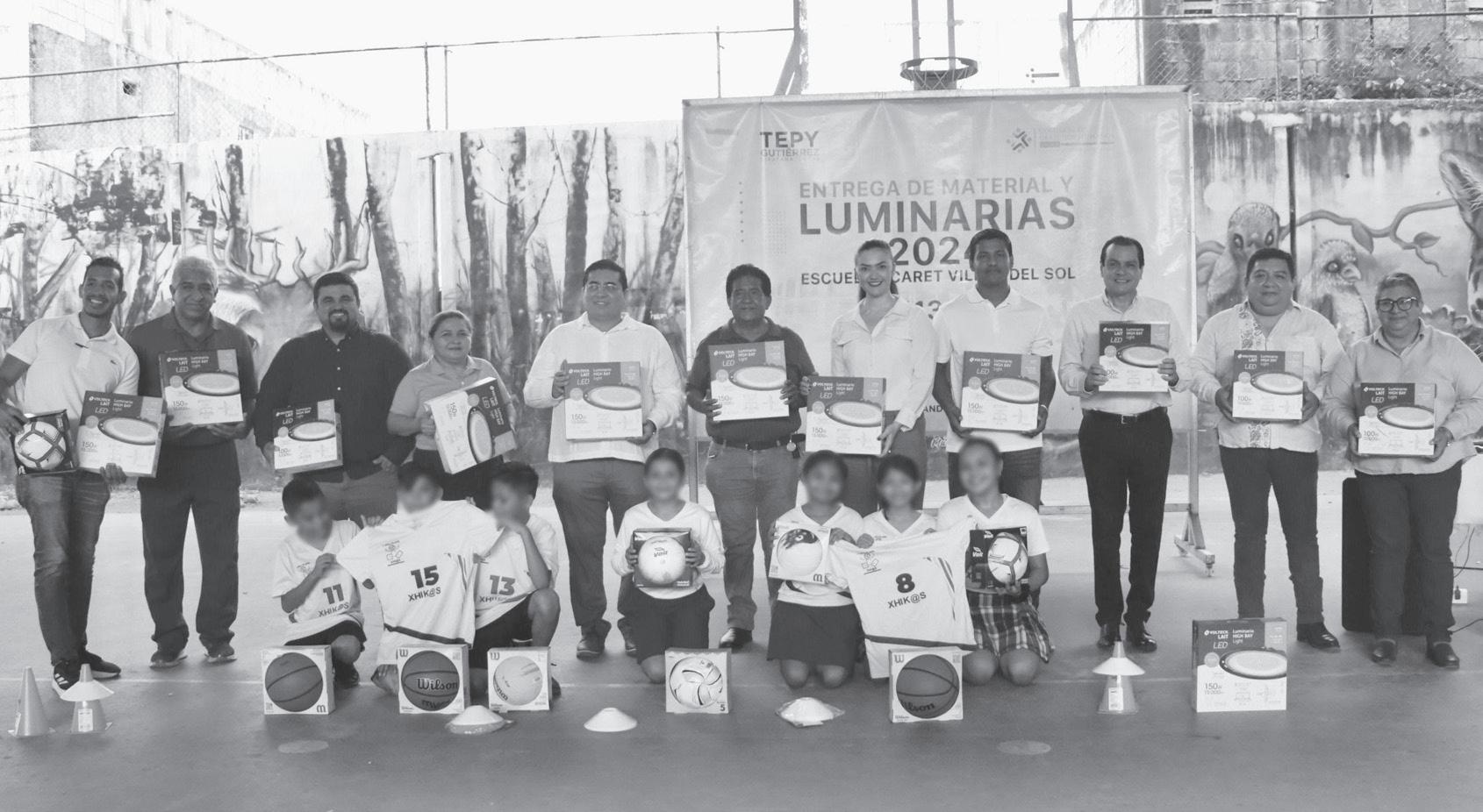 Ayer martes la diputada Tepy Gutiérrez acudió a la Escuela Primaria Xcaret, ubicada en Villas del Sol, Distrito que caminó en campaña y donde un grupo de profesores encabezados por el maestro Marcial Pulido de Educación Física, le externó la necesidad por adquirir las luminarias del domo de la escuela para poder hacer uso de este espacio en sus actividades escolares y deportivas.