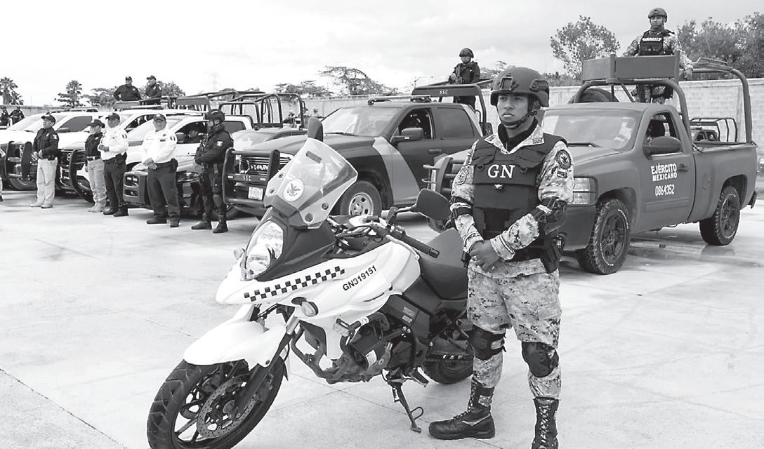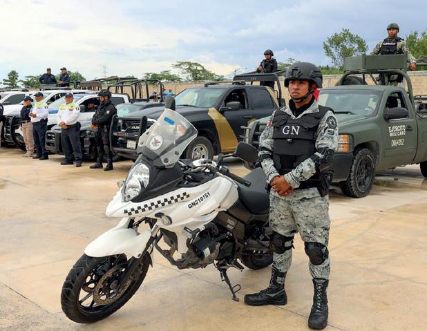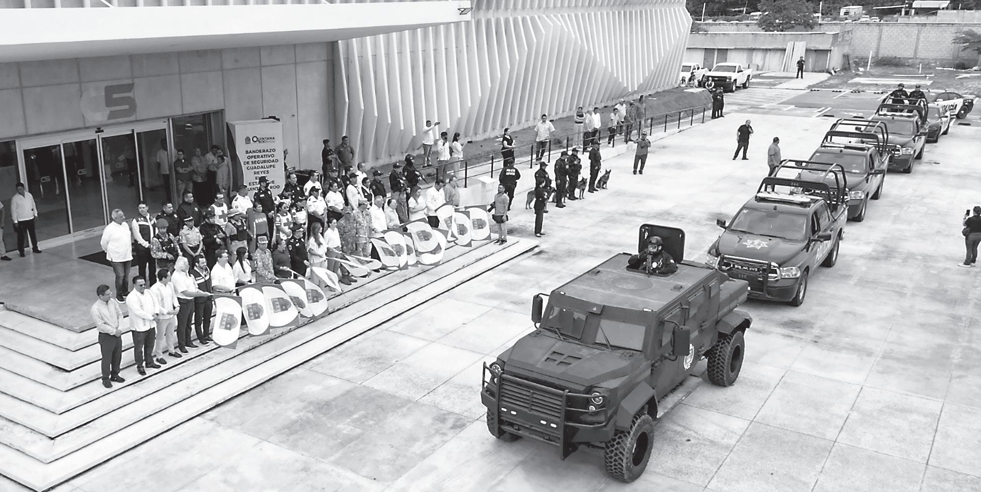 Puerto, Bacalar y Othón P. Blanco; la Guardia Nacional, 670 en todo el estado, en carreteras y en aeropuertos.