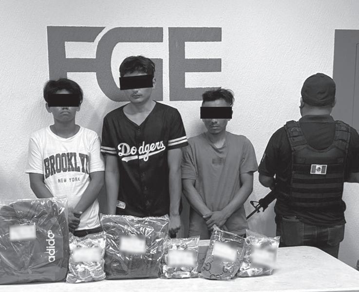 interior encontraron diversas bolsas con al parecer marihuana. Cerca del inmueble, los agentes detuvieron a tres personas identificadas como Rubén Benjamín “N”, Wiliam “N” y Víctor Manuel “N”, cuando realizaban transacciones de sustancias ilegales y le hallaron bolsitas con al parecer marihuana. Otro cateo tuvo lugar en un inmueble localizado en la carretera Villahermosa-Chetumal de la localidad Nicolás Bravo del municipio de Othón P. Blanco, donde aseguraron al parecer marihuana.