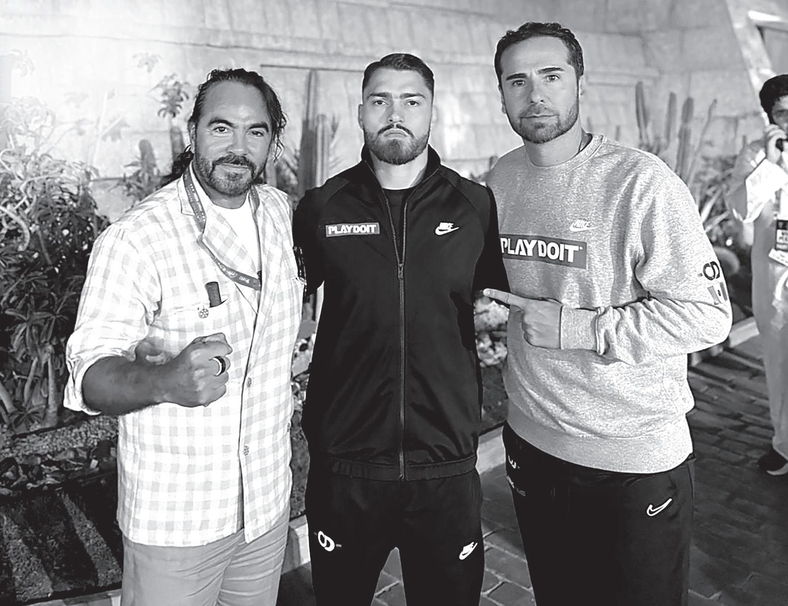 › Pepe Gómez, promotor de “Cancun Boxing”, peleador originario de Chihuahua y Guillermo Rocha, de “Boxing Time