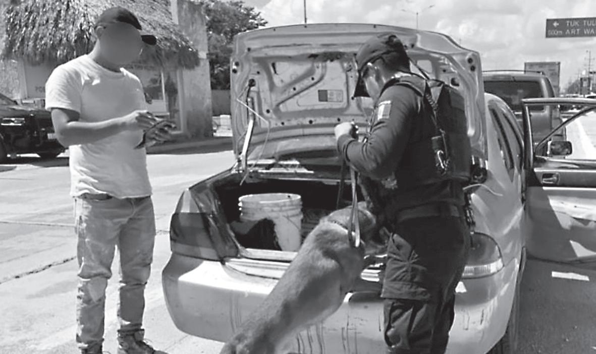 la búsqueda de narcóticos y armas de fuego, participó en un barrido de seguridad. Esta medida buscó asegurar el bienestar de las personas presentes en el evento, reafirmando el compromiso del gobierno con la seguridad ciudadana. El operativo de la Unidad Canina no se detuvo ahí. En la carretera Chetumal-Bacalar, kilómetro 12.5, el equipo brindó apoyo a un módulo de control de seguridad. Con la ayuda del perro Jey, especializado en detección de objetos ilícitos, se inspeccionaron 10 vehículos y se revisó a un total de 40 personas. Este tipo de acciones se llevan a cabo para evitar el traslado de sustancias o artículos peligrosos que podrían poner en riesgo a la