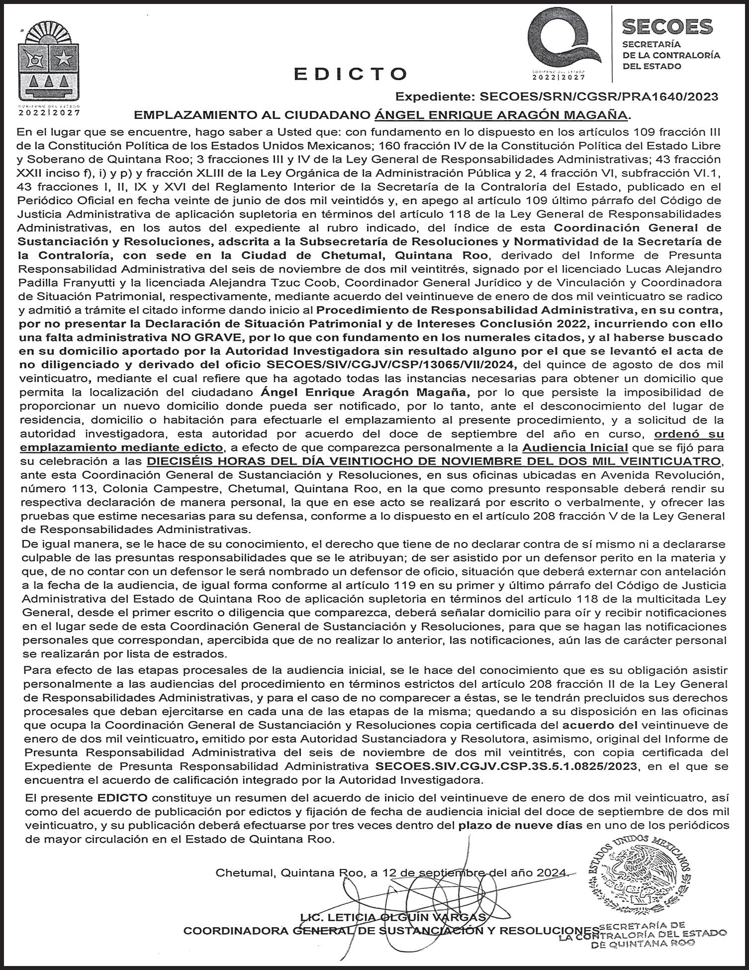 Por su parte, la Secretaría de Seguridad Ciudadana (SSC) informó hace un día que, por el momento, dos funcionarios adscritos al Centro de Reinserción Social (Cereso) de Cancún, Jorge Armando López Rosas, director del Centro, y Sergio Javier Alcalá Encinas, comandante operativo, fueron separados de sus cargos mientras continúan las investigaciones exhaustivas de la Fiscalía General del Estado de Quintana Roo (FGE).