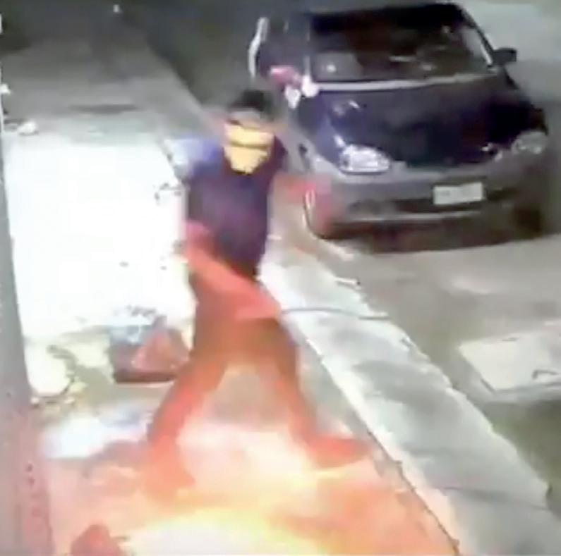 › Los intentos por incendiar su hogar quedaron registrados en un video.
