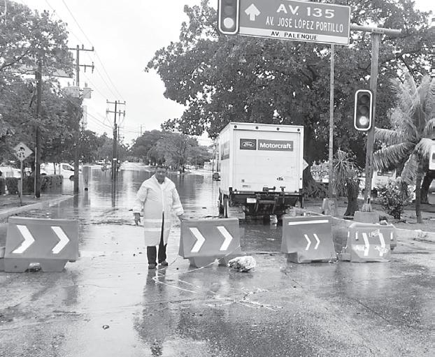 determinó cerrar algunas vialidades hasta que baje el nivel del agua. Estas son: Av. Bonampak (de Km. Cero a Av. Uxmal); Carril lateral de Av. Tulum (de Av. Sayil a Av. Xcaret); Av. Huayacán con Calle Jabín; Av. Andrés Q. Roo (de Av. Kabah a Av. Del Sol); Av. La Luna con Av. Del Sol; Av. Kabah (de Av. Copán hasta Av. Yaxchilán): Blvd. Colosio (altura Toyota, dirección norte a sur); Blvd. Kukulcán (acceso sólo para camionetas y autobuses).
