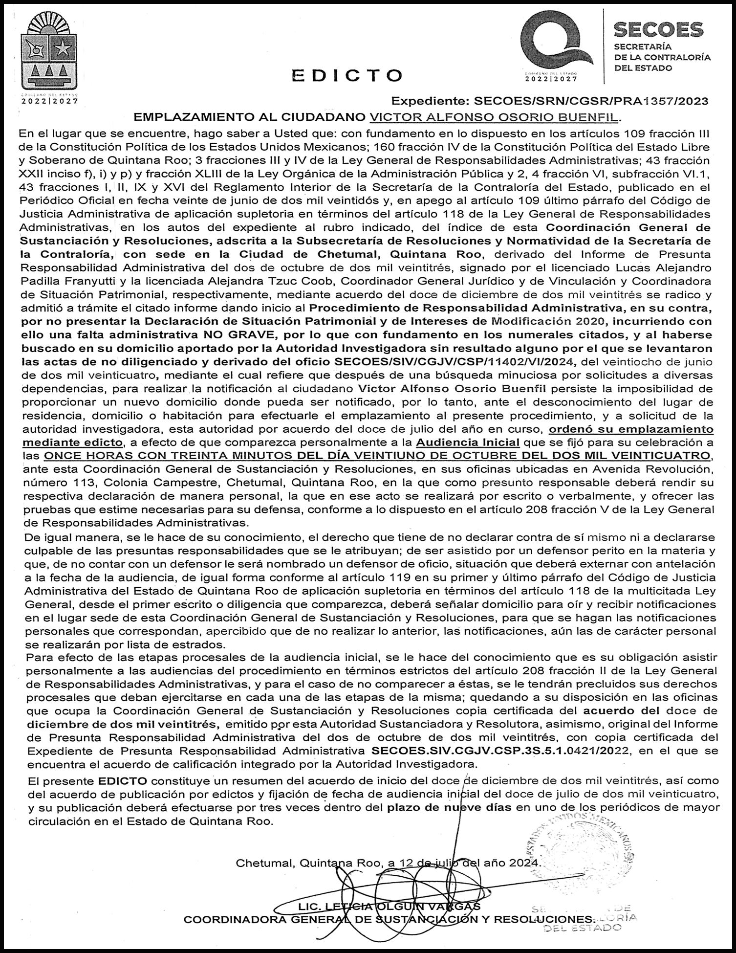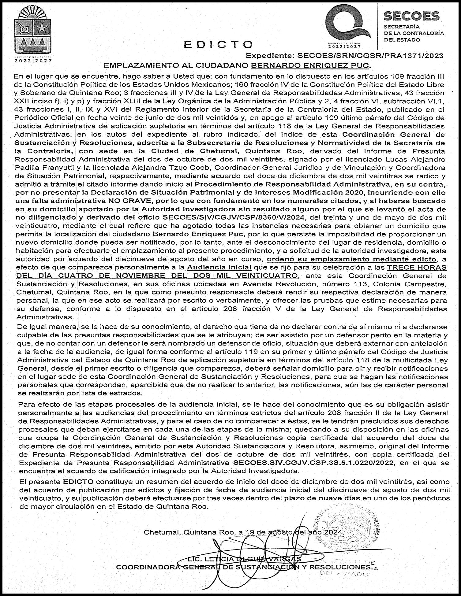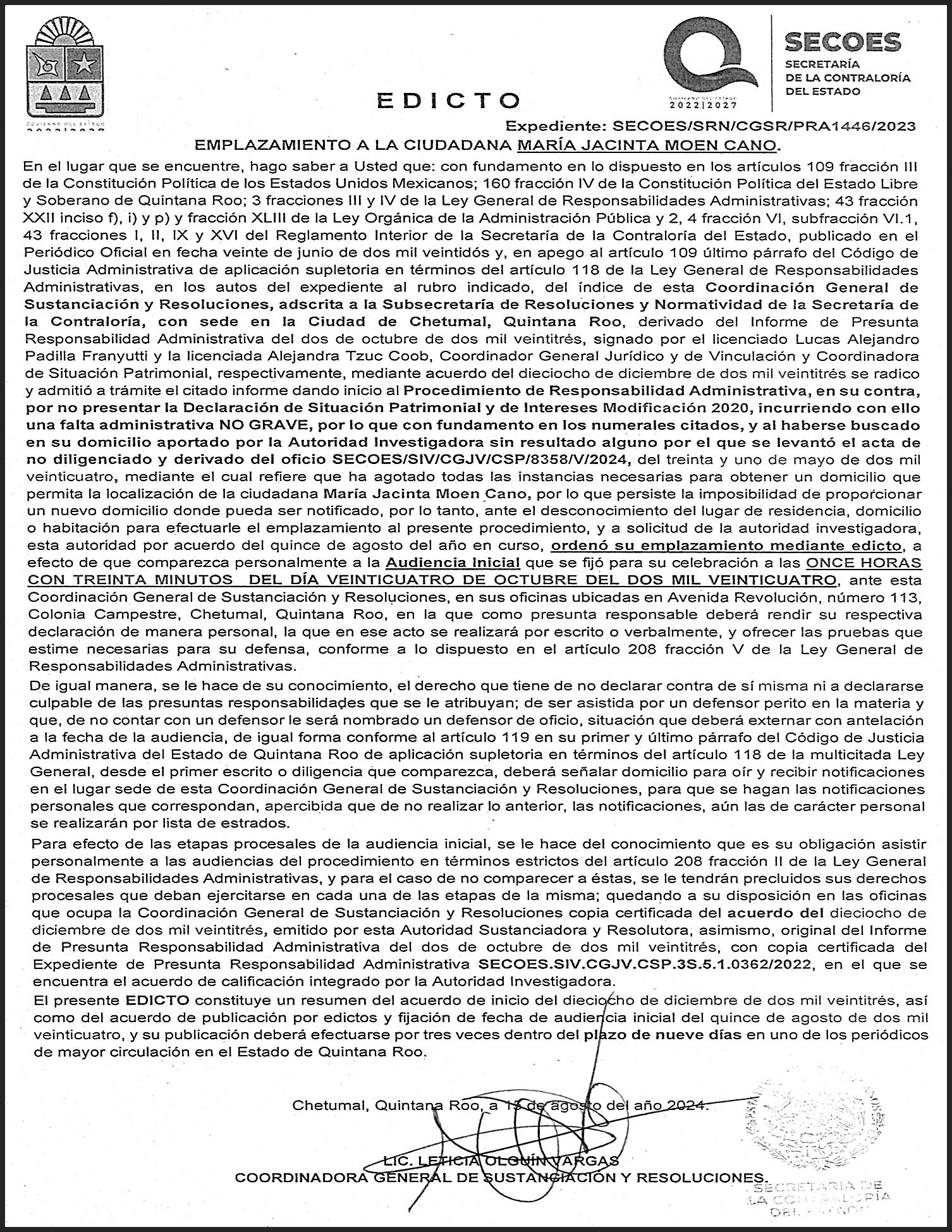 ción, de la Secretaría de Desarrollo Urbano Sustentable, de la Secretaría de la Contraloría, de la Comisión de Agua Potable y Alcantarillado, y del Instituto de Movilidad. Las personas titulares de la Secretaría de Turismo, del Instituto Quintanarroense de la Mujer y de la Agencia de Proyectos Estratégicos comparecerán el día 7 de octubre. Finalmente el día 9 de octubre acudirán a comparecer las personas titulares de la Secretaría de Salud, de la Secretaría de Ecología y Medio Ambiente, de la Secretaría de Desarrollo Económico, y de la Secretaría de Bienestar.
