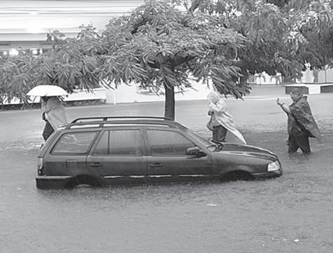 › Ante los encharcamientos, los agentes brindaron apoyo a los conductores que se quedaron varados.