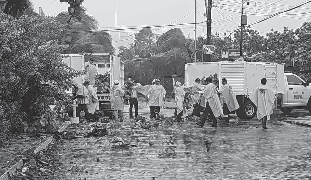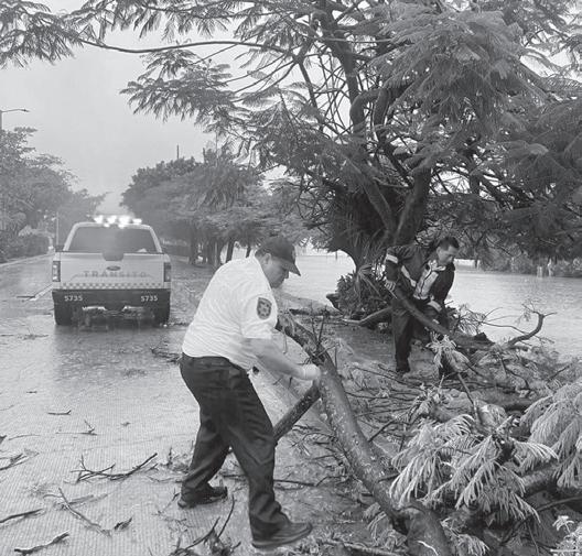 lección de basura vegetal y limpieza de rejillas para que las vialidades queden en óptimas condiciones para el tráfico de la ciudadanía. Además, ofreció apoyó a las y los cancunenses que se quedaron varados.