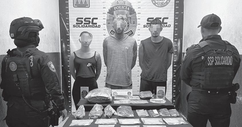 La Policía Municipal de Solidaridad aseguró a 3 personas, un arma de fuego, cartuchos, más de 80 posibles dosis de narcóticos, radios y un chaleco balístico, como parte de las acciones para la construcción de paz y prevención de delitos.