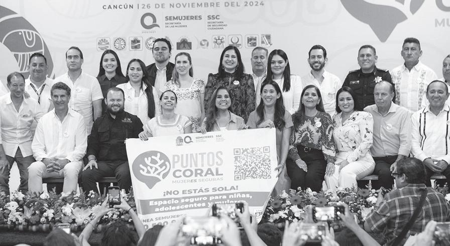 colectivo: “Puntos Coral-Mujeres Seguras”, reúne la solidaridad de diversos sectores de la sociedad, desde ciudadanía hasta empresas comprometidas y socialmente responsables. “Juntas estamos creando espacios seguros donde las mujeres, especialmente aquellas víctimas de violencia, encuentren protección, orientación, apoyo y esperanza”, añadió. Esther Burgos Jiménez, secretaria de las Mujeres, explicó que esta estrategia se lanza a la par con la campaña Únete de la ONU y forma parte de los 16 días de activismo en el marco del Día Internacional de la Eliminación de la Violencia contra la Mujer. Precisó que esta estrategia se posiciona como la red de apoyo para todas las mujeres, adolescentes y niñas del estado y para que hoy más que nunca sepan que en Quintana Roo ¡No están solas!