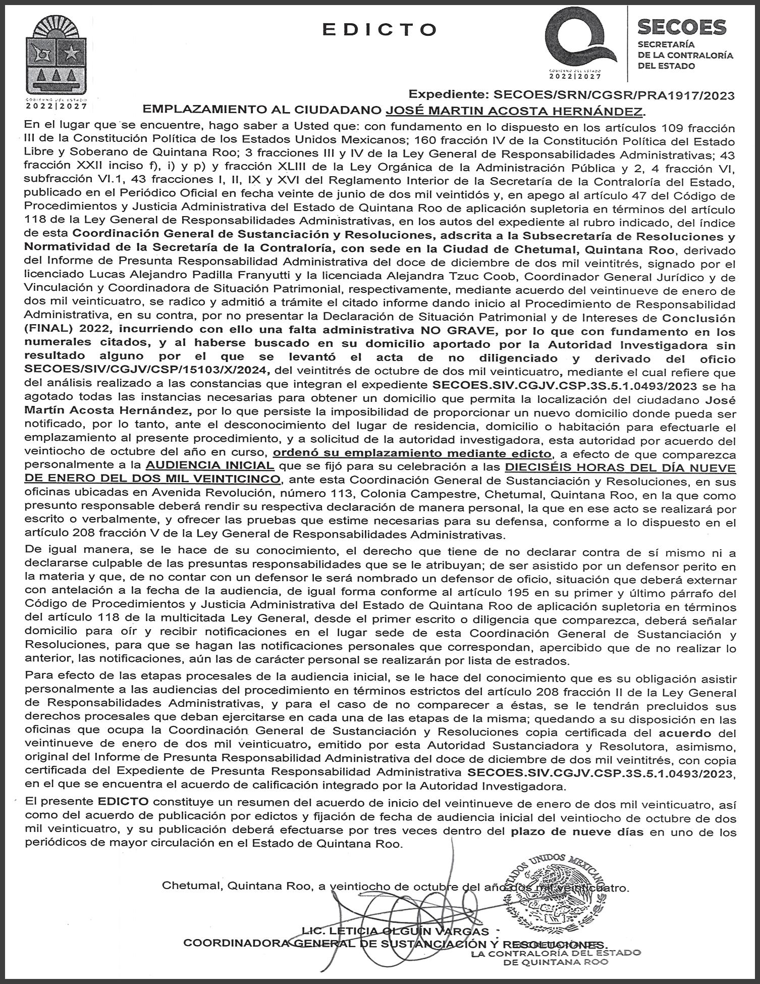 DE QUINTANA ROO, AFIRMA EL