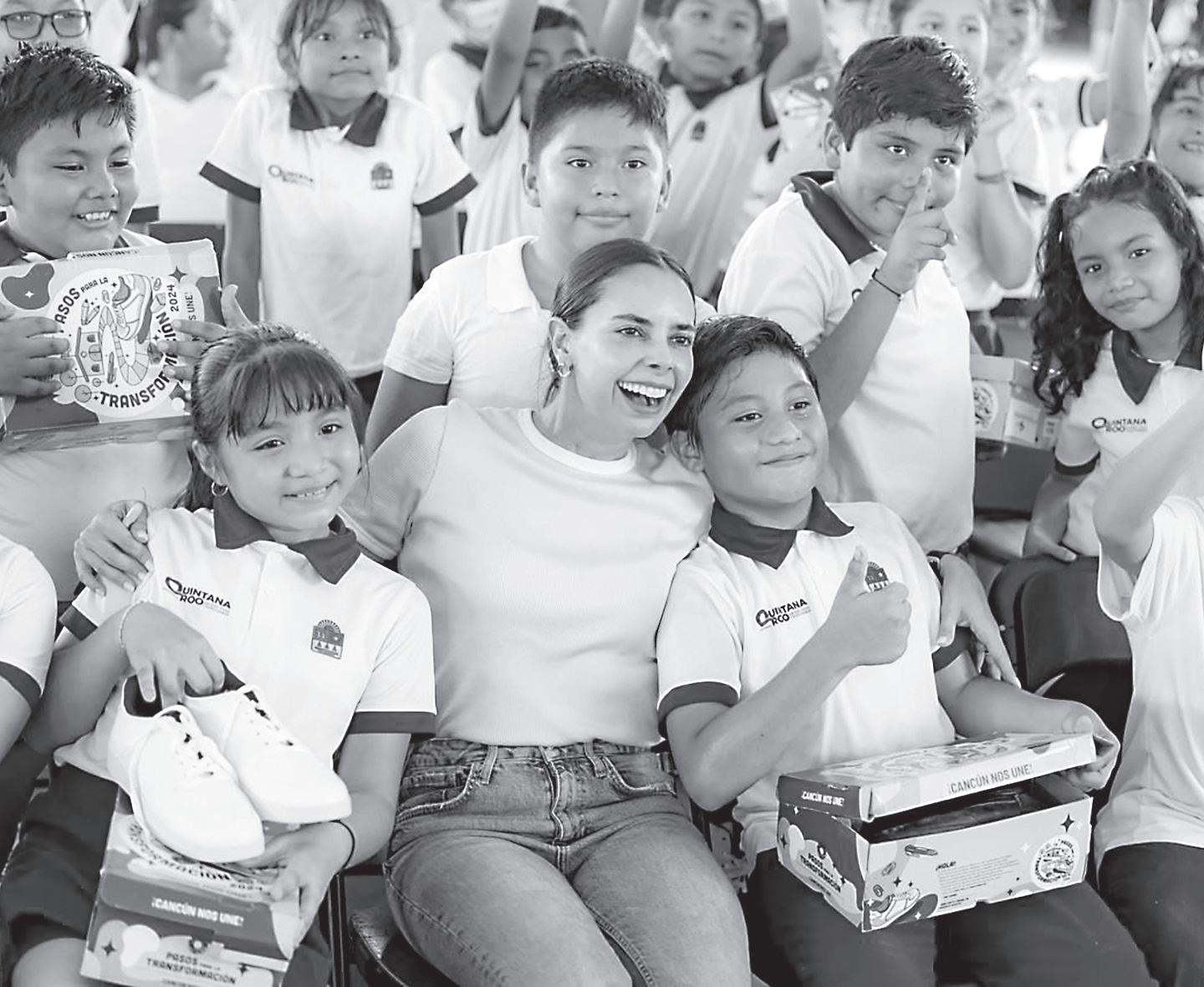 “Pasos para la Transformación”, se han entregado hasta el momento 72 mil 652 pares de zapatos tenis escolares de manera gratuita a alumnos de los niveles especial, preescolar, primaria y secundaria de 251 escuelas públicas de Cancún, reafirmando su compromiso con la educación de niñas, niños y jóvenes.