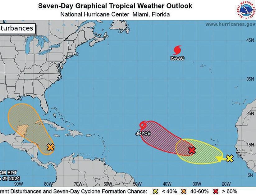 a la posible formación de una zona de baja presión en el occidente del mar Caribe y Golfo de México, con un 50% de probabilidad de desarrollo ciclónico en 7 días. Además, una baja presión en el Atlántico Oriental aumentó su probabilidad de desarrollo ciclónico al 60% en 48 horas y al 30% en 7 días.