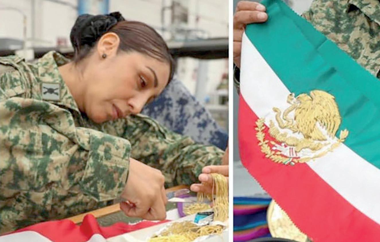 La banda presidencial que estrenará Claudia Sheinbaum la confeccionan mujeres militares dentro de la Fábrica de Vestuario y Equipo (Fave) del Ejército, comandadas por Evangelina Rentería de la Cruz, soldada primera auxiliar de la Secretaría de la Defensa Nacional. Está hecha con hilo de canuti-