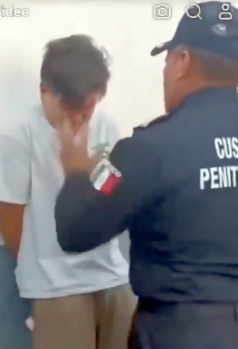Este viernes se difundió en redes sociales un video en el que se observa al “Fofo” esposado y con la cara hacia la pared, mientras tres custodios del centro penitenciario de Barrientos lo golpean mientras lo intimidan. Durante los golpes los oficiales le dicen: “¿Por qué lloras?”, “Te vamos a dar buen trato”, mientras le jalan el cabello le da bofetadas y golpes en las costillas y el suplica “ya, por favor”.