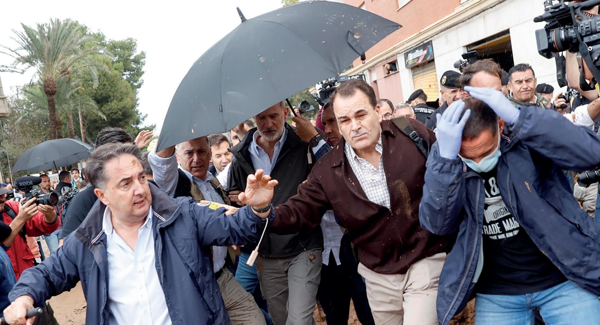 LLUVIAS TORRENCIALES, RECIBIERON A LA COMITIVA REAL CON GRITOS DE “ASESINOS” Y “DIMISIÓN”, ADEMÁS DE ARROJARLES BOLAS DE LODO EN SEÑAL DE INDIGNACIÓN.