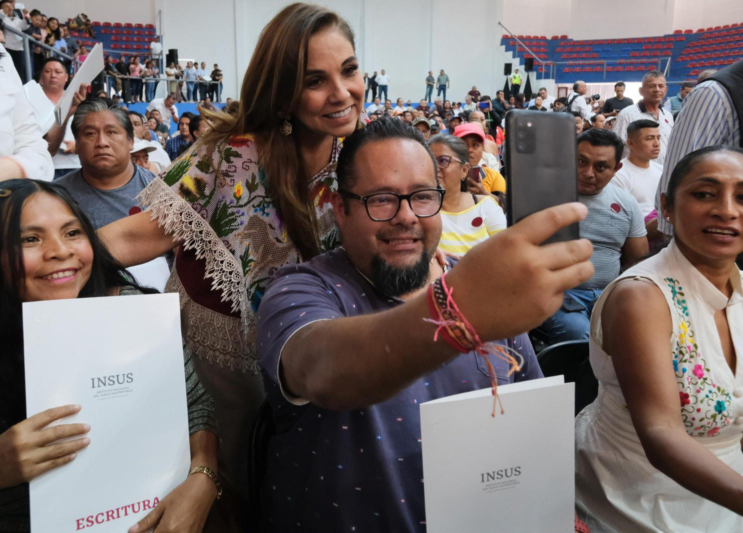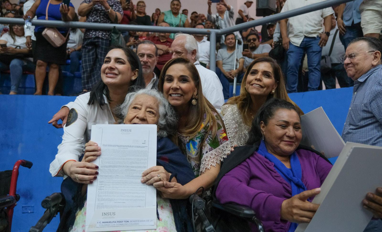 honoraria del Sistema DIF Quintana Roo, Verónica Lezama Espinosa; el secretario de Desarrollo Territorial Urbano Sustentable, Armando Lara De Nigris; el director de la Agencia de Proyectos Estratégicos, José Alberto Alonso Ovando; el coordinador de programas sociales federales, Armando Abreu Marín. También la beneficiaria Julieta Durán.