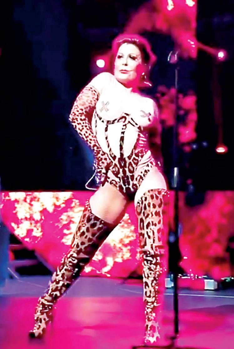 › La famosa usó un leotardo de animal print con botas a juego, además de transparencias que cubrió con una especie de cinta adhesiva. ESCANEA este código QR para visualizar el video.
