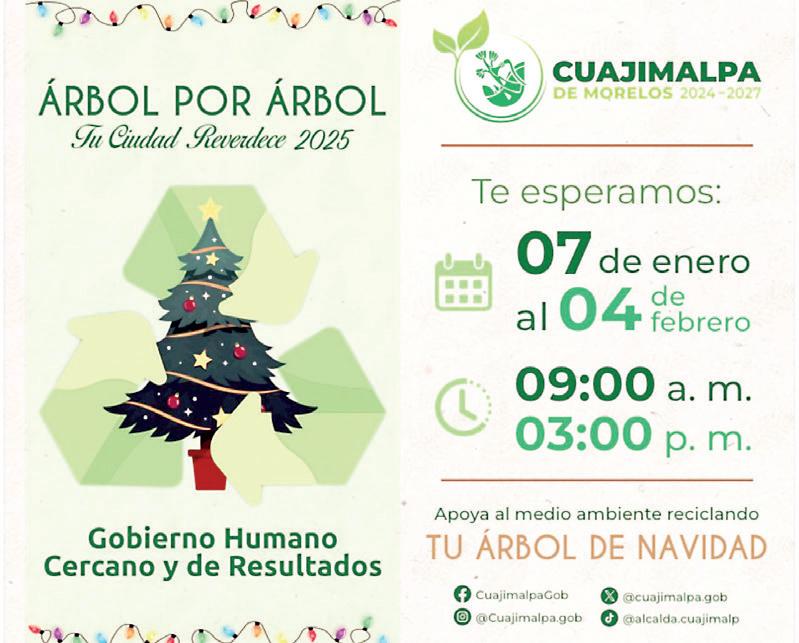 La alcaldía de Cuajimalpa ha lanzado una convocatoria a la ciudadanía para que participe en una importante campaña de reciclaje de árboles navideños naturales, que será recibida hasta el próximo 4 de febrero.