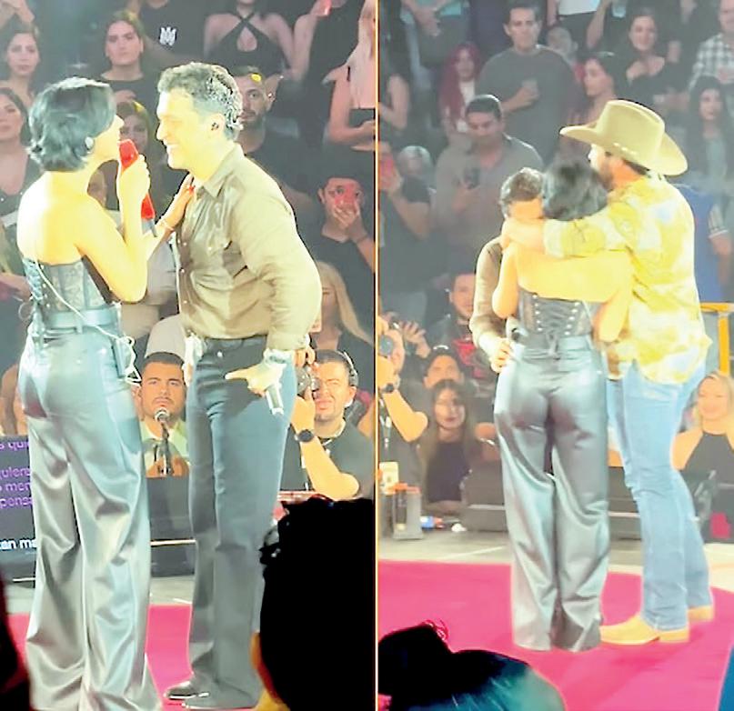 › El mariacheño subió a su esposa y cuñado al escenario, donde cantaron “Por Mujeres Como Tú”, éxito de Pepe Aguilar.