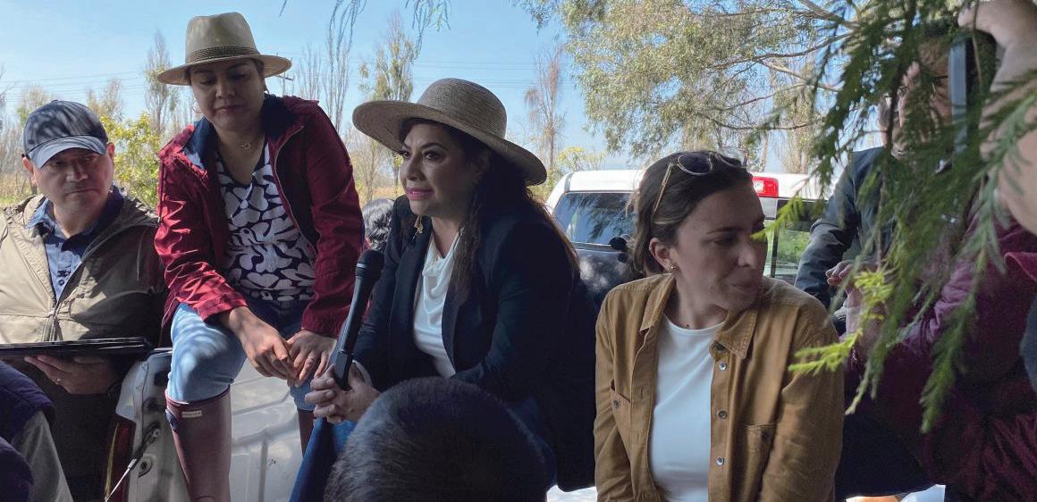 › La primera autoridad prometió a los productores apoyos económicos, centros de acopio y limpieza de los canales para recuperar las cosechas.