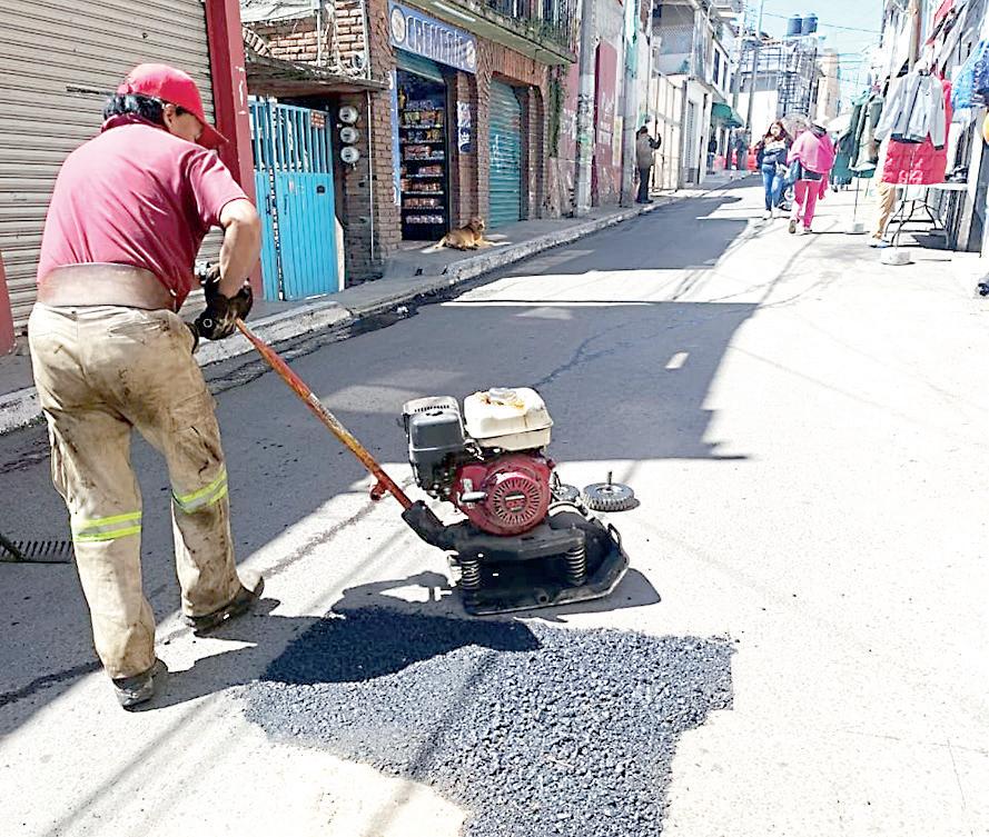 La primera acción del programa se llevó a cabo en la calle Abasolo, en la colonia San Mateo, donde se realizaron trabajos de bacheo y ni-