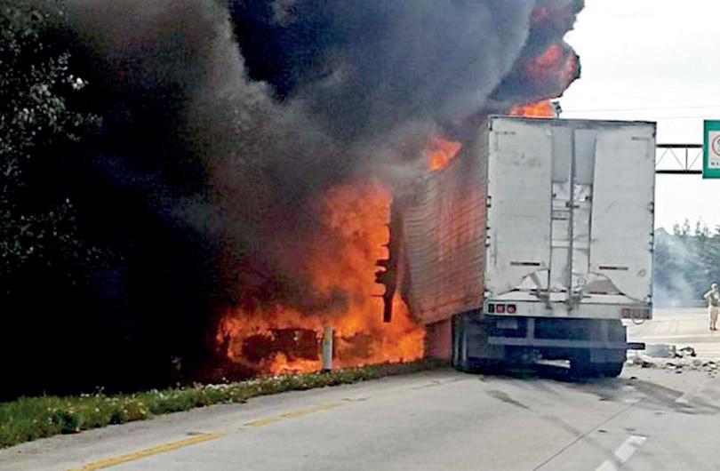 Accidente. Un choque sobre la autopista México-Querétaro, a la altura del municipio de Jilotepec, dejó a un conductor lesionado que logró salir de la cabina del tráiler que terminó por incendiarse.