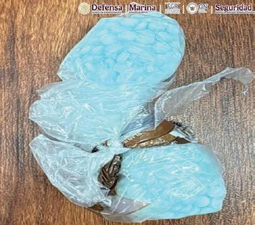 Los elementos de seguridad, en apego a los protocolos de actuación, llevaron a cabo una inspección al vehículo color rojo en el que conducía, donde encontraron dos bolsas de plástico transparente en las que se podían observar pastillas de color azul en el interior.